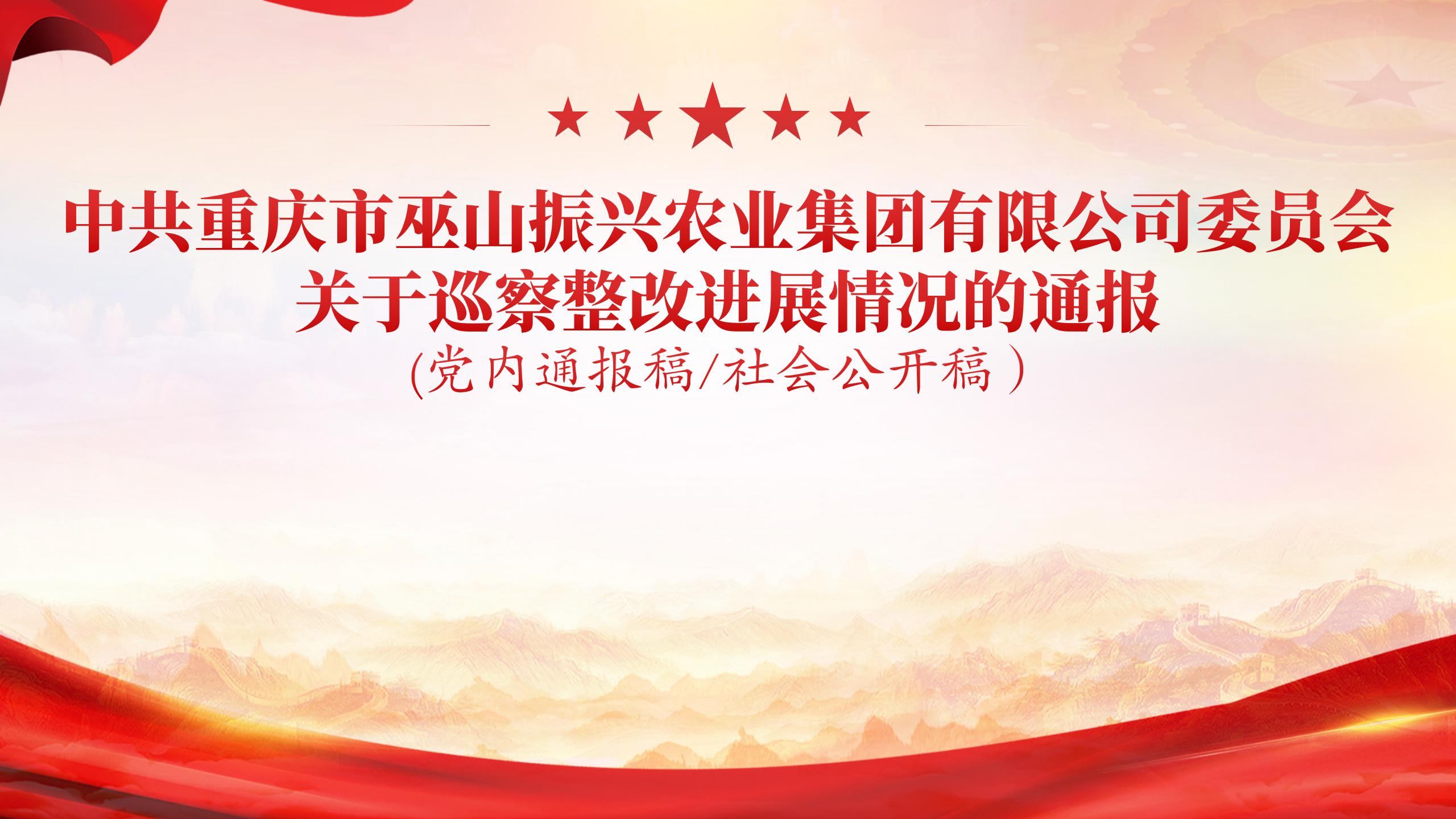 中共重庆市巫山振兴农业集团有限公司委员会关于巡察整改进展情况的通报 (党内通报稿/社会公开稿)